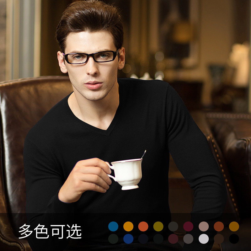 Cardigan men's V-neck solid color Korean version sweater men's chicken heart collar long sleeve thin section thick section base sweater autumn and winter