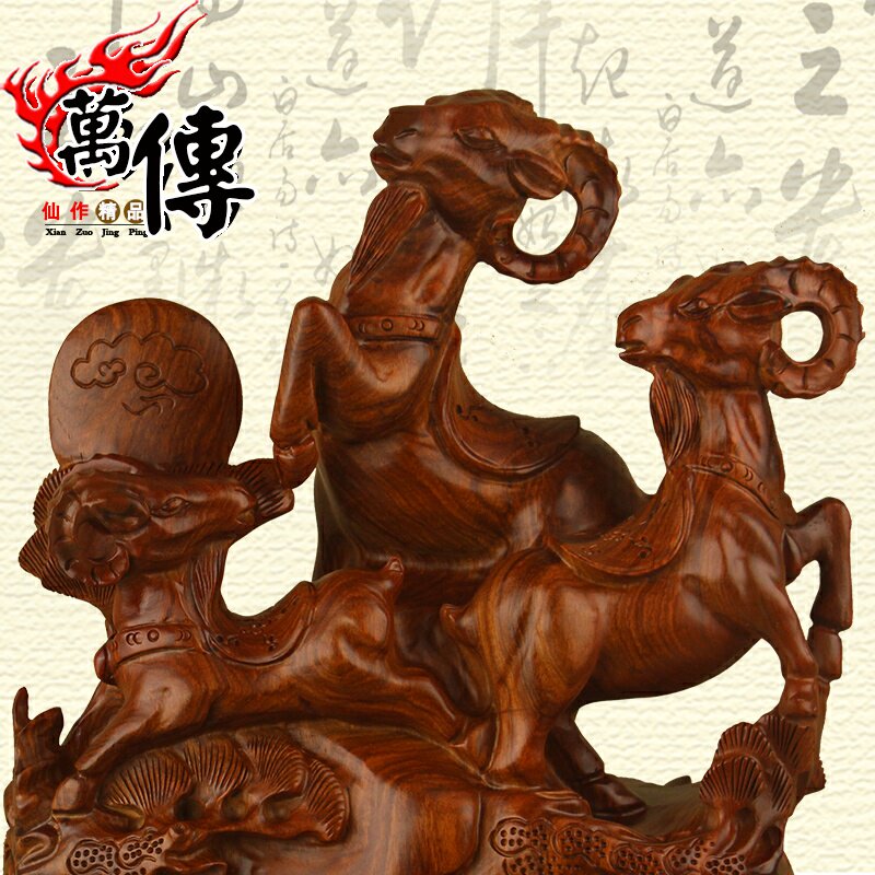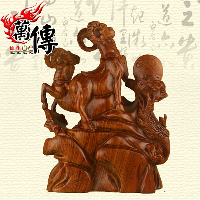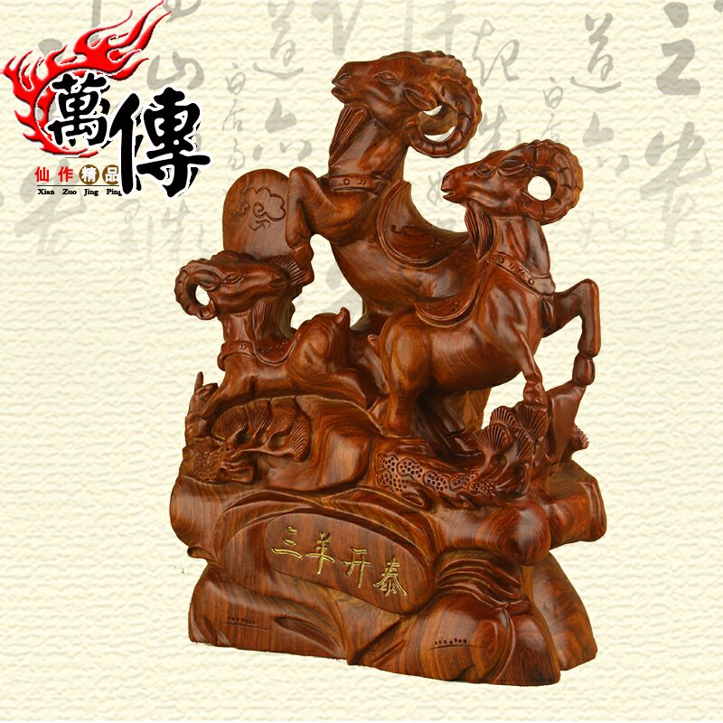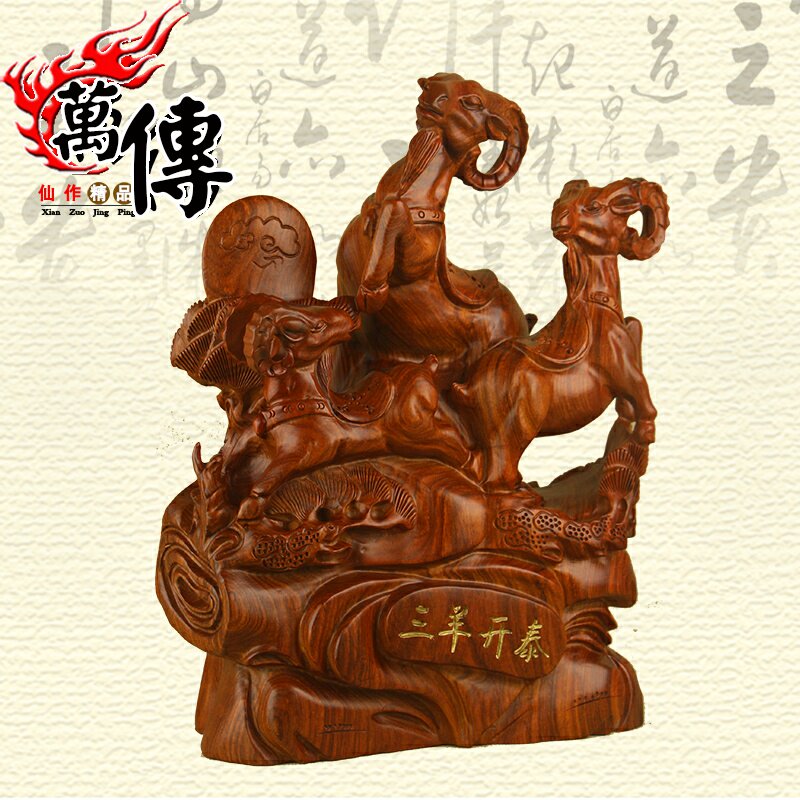 ten thousand Spread Wood Carvings Three Sheep Open Tai Swing Pieces Flowers Pear Solid Wood Goat Red Wood Sanyang Kaitai Craftsmanship Gift Pendulum Decoration Decorations
