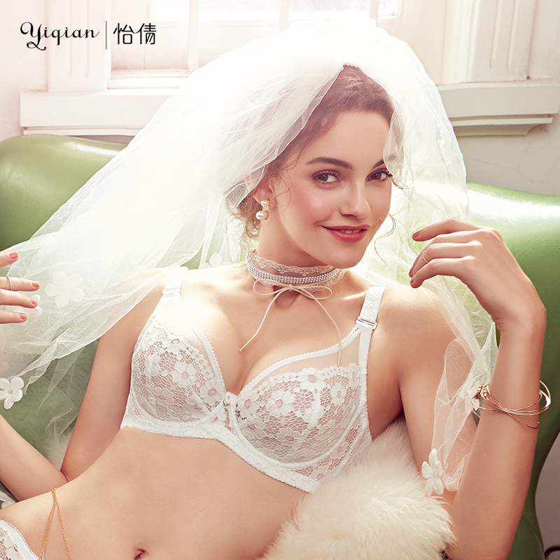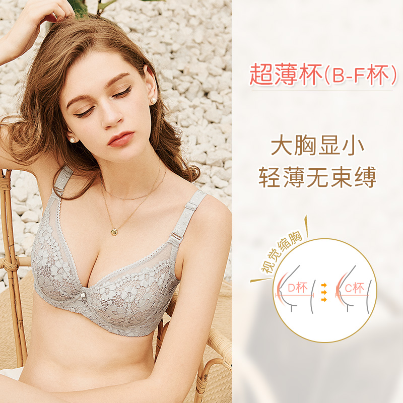 Yiqian underwear women's thin models gather summer French lace large size bra Marry big chest small ultra-thin bra