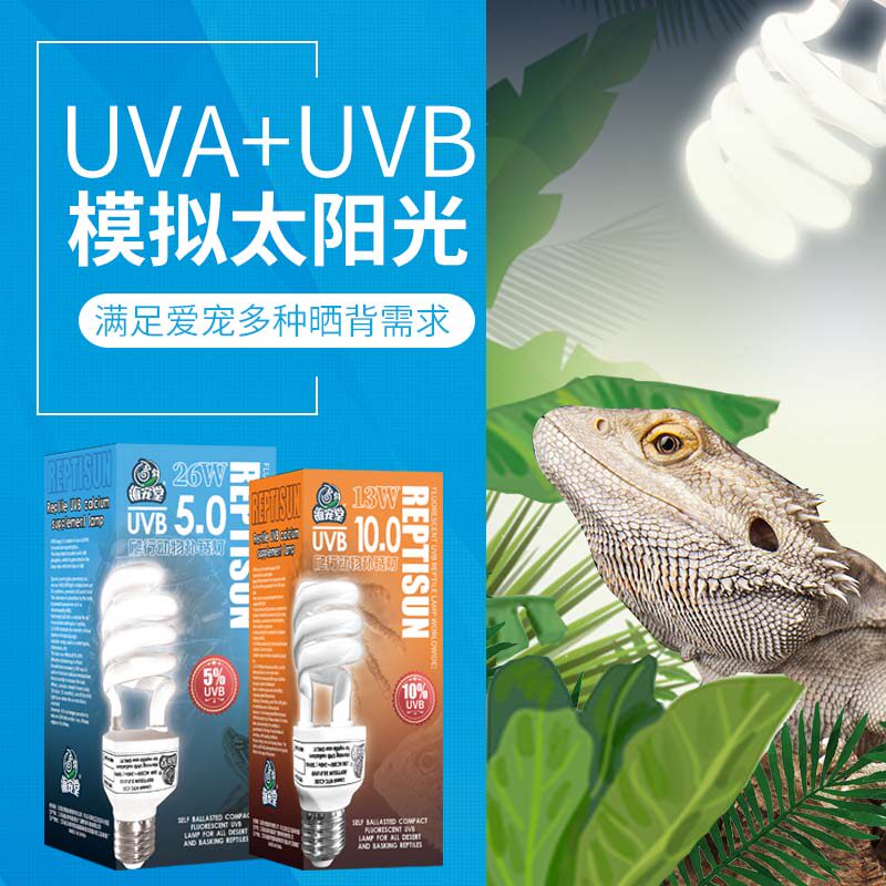 Crawling pet uvb lamp supplement calcium reptile sun lamp tortoise box mane lion lizard yellow edge turtle sunbathing back light 10.0 5.0