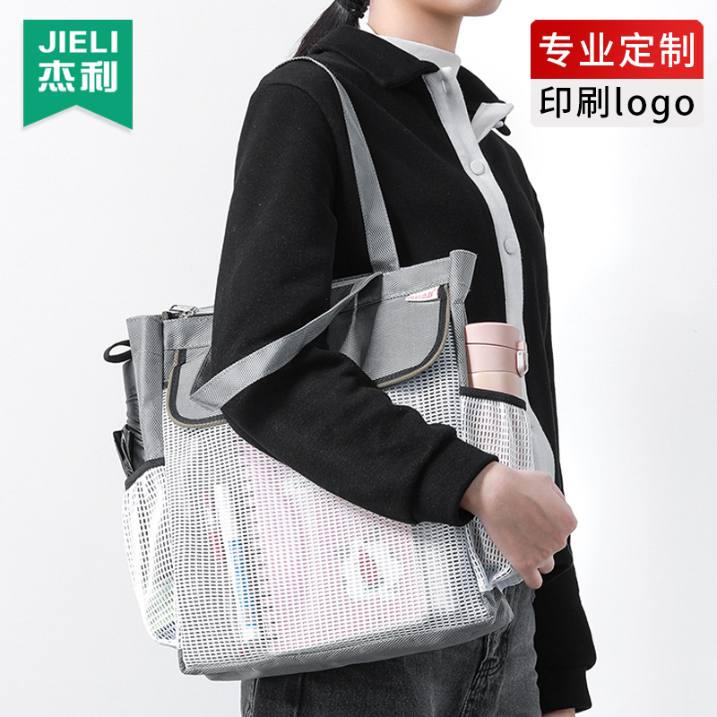 Large capacity tote bag Canvas bag book document bag A4 zipper bag can be placed cup Oxford cloth Waterproof storage Office information Textbook Art tutoring class Tutoring bag Shopping bag Custom logo