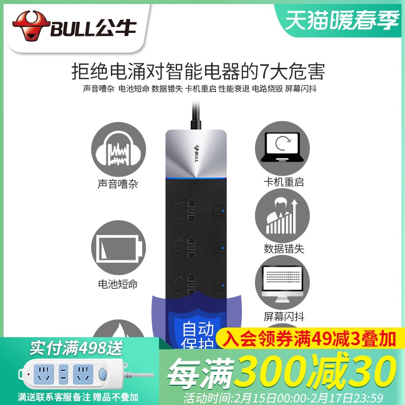 Bull socket panel porous lightning protection surge resistant home multifunctional black plug board terminal board patch panel plug board