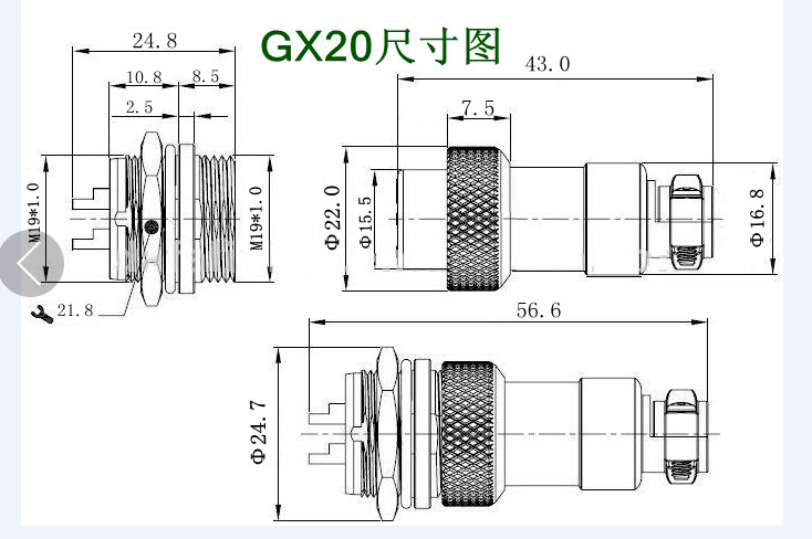 Air plug socket GX20 butt 2 Core 3 Core 4 Core 5 Core 6 Core 7 Core 8 Core 9 Core 1011121415 19mm