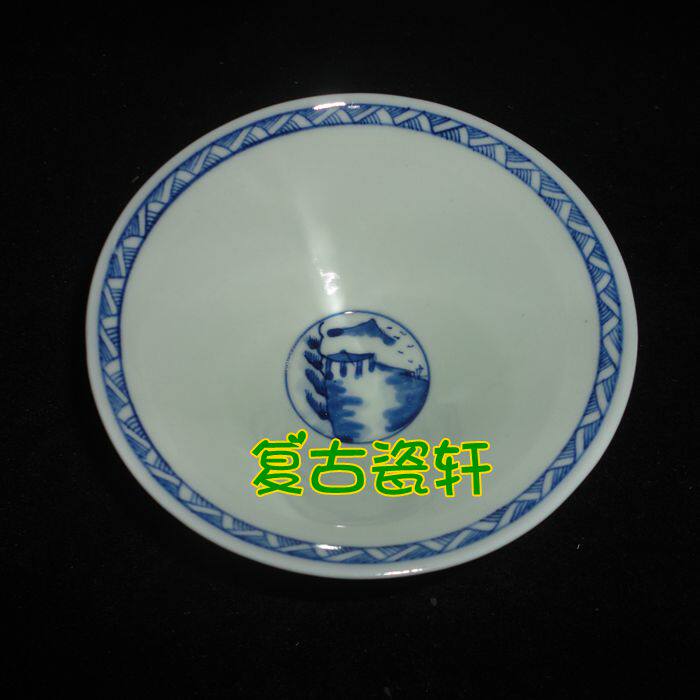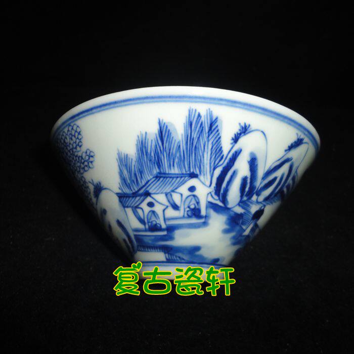 Jingdezhen Cultural Leather Factory Porcelain Hand Painting Blue Huangshan Water Picture Cup Tea Bowl of tea