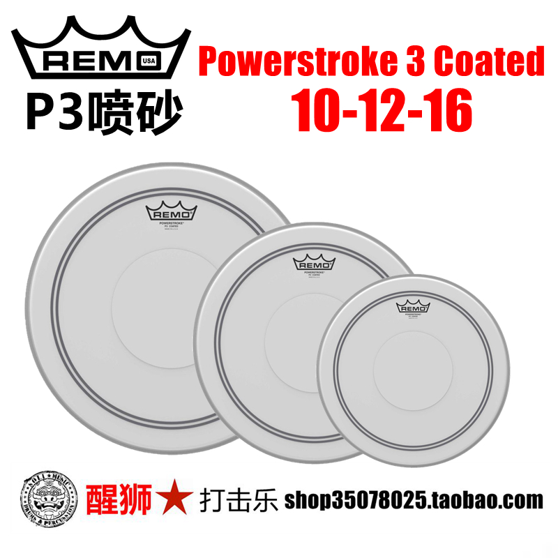 Wake Lion Percussion REMO Powerstroke 3 Coated P3 sandblasted with drum leather set drum leather