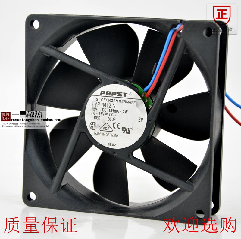 Original dress German PAPST TYP 3412N 12V 185mA 2 2W 9025 9CM 9CM inverter fan
