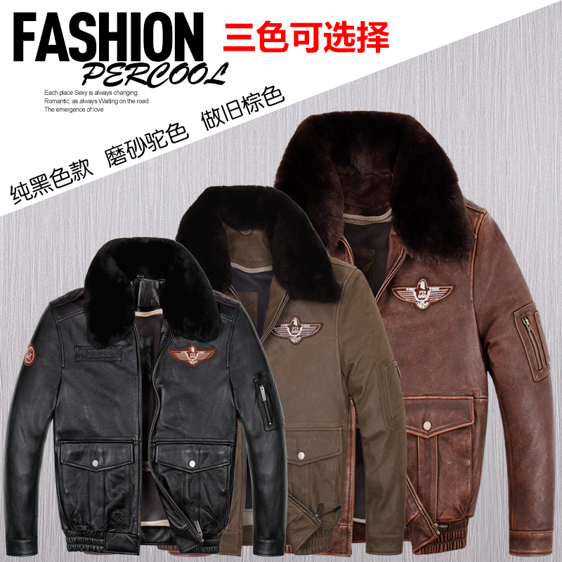 European and American pilot clothing genuine leather clothing male style imported head layer pure cow leather autumn and winter short jacket big code jacket thickness