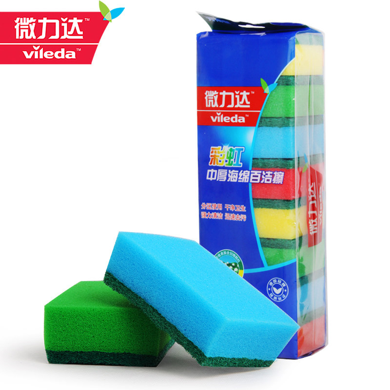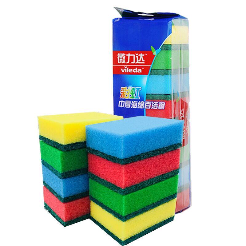 German Weilida rainbow medium-thick sponge Baijie wipes 8 pieces of dishwashing brush pot artifact degreasing cleaning cloth