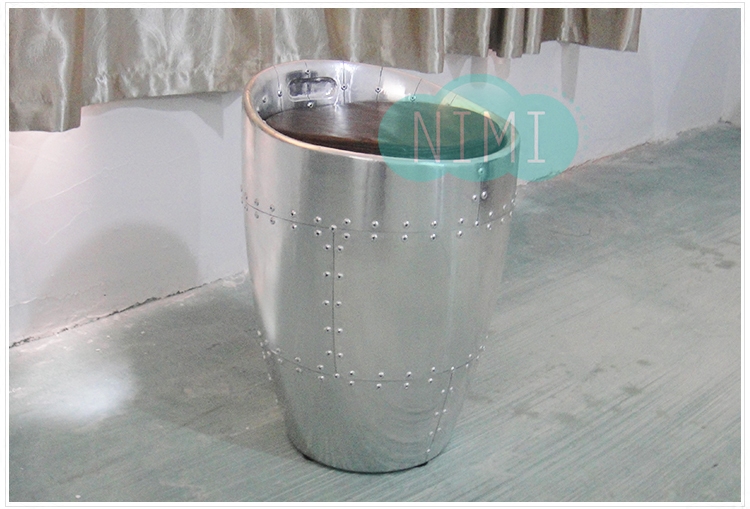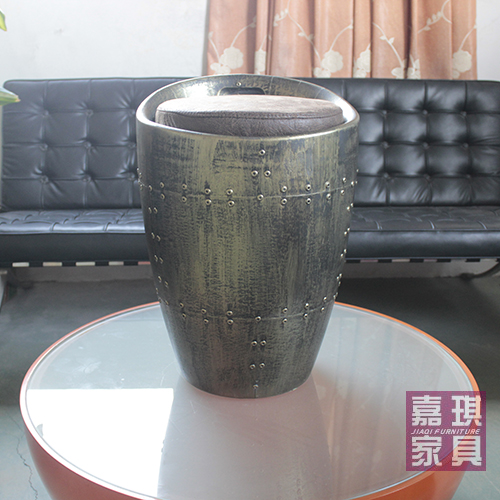 Aluminum leather cylinder seat retro metal space chair old creative round stool special-shaped simple toilet chair changing shoe chair