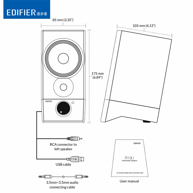Edifier Rambler R19U desktop computer speaker notebook Mini Portable USB desktop multimedia small audio subwoofer Super Bass High quality small home