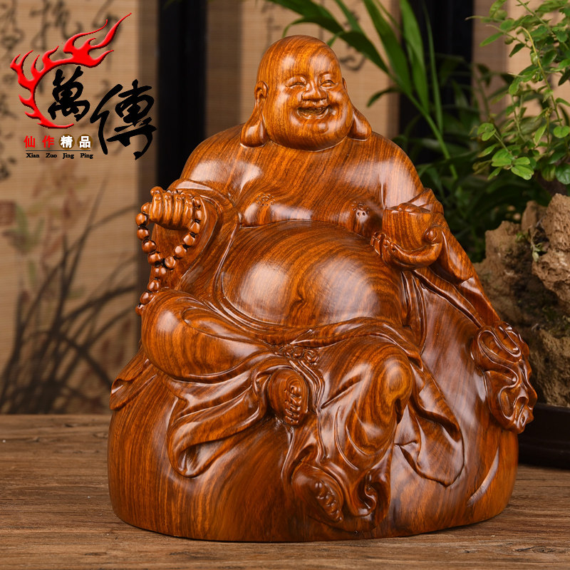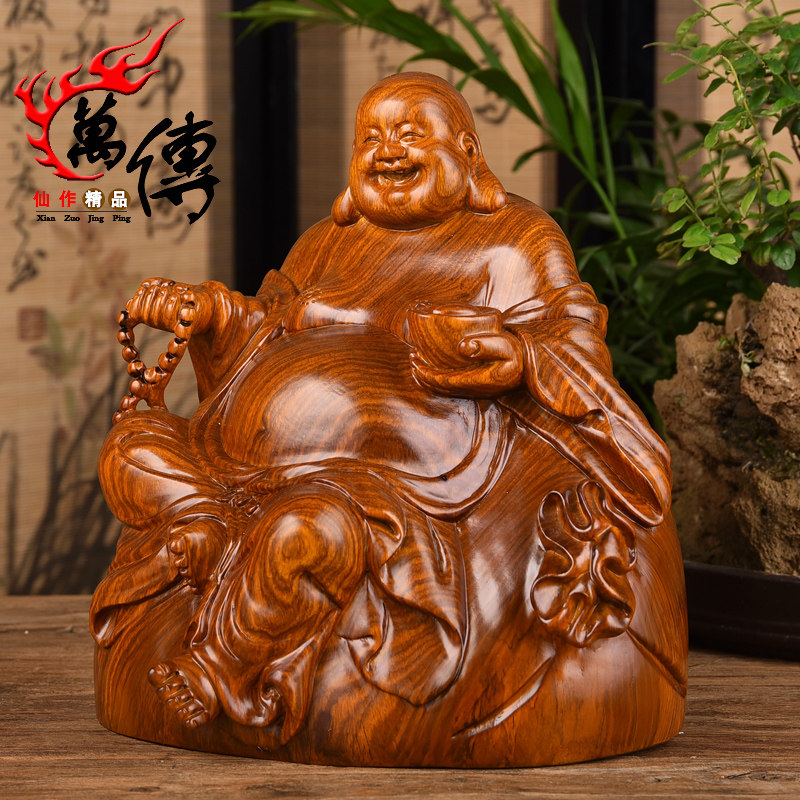 Wan Chuan wood carving Maitreya Buddha ornament Rosewood sitting Buddha Solid wood laughing Buddha carving craft gift decoration Home jewelry gift
