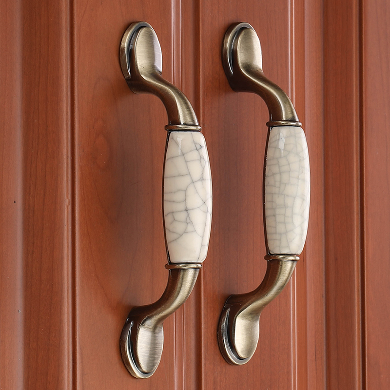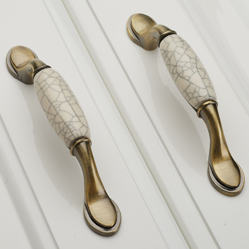 Cracked ceramic European pastoral handle Modern minimalist overall cabinet ceramic handle Antique pastoral cabinet door handle