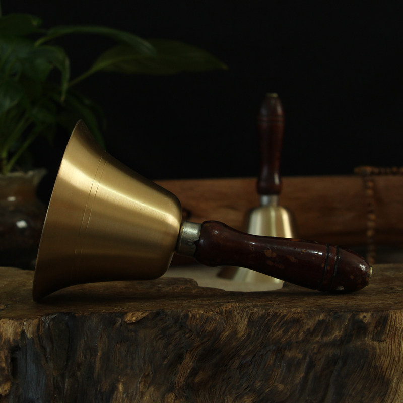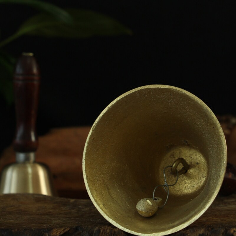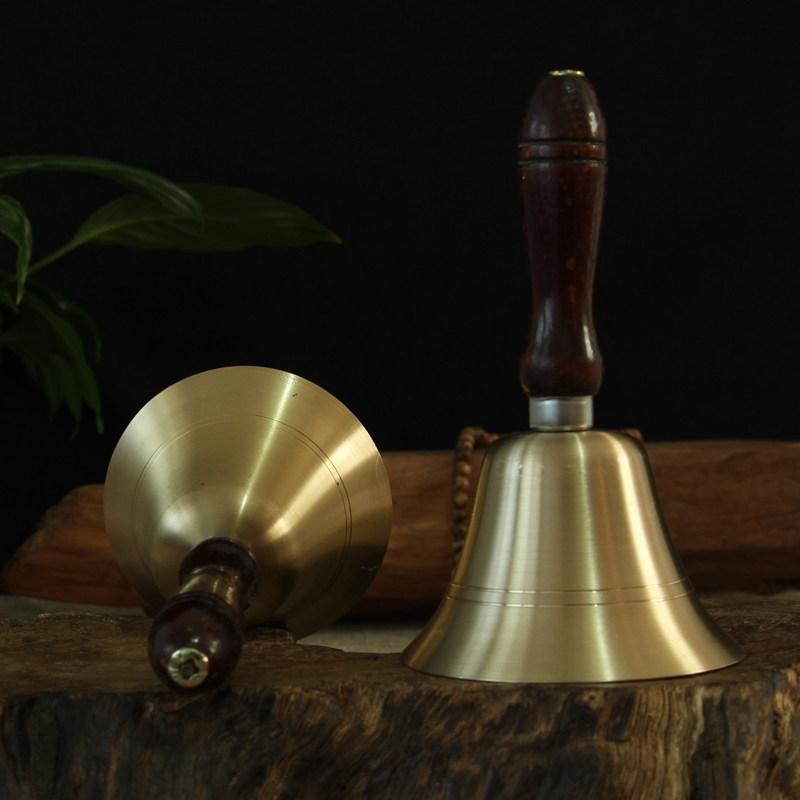 Pure copper rocking bell Chinese wood handle Shake Pure Copper Bell Pendulum with rocking bell Bronze Bell School Class Buddha Hall Decoration