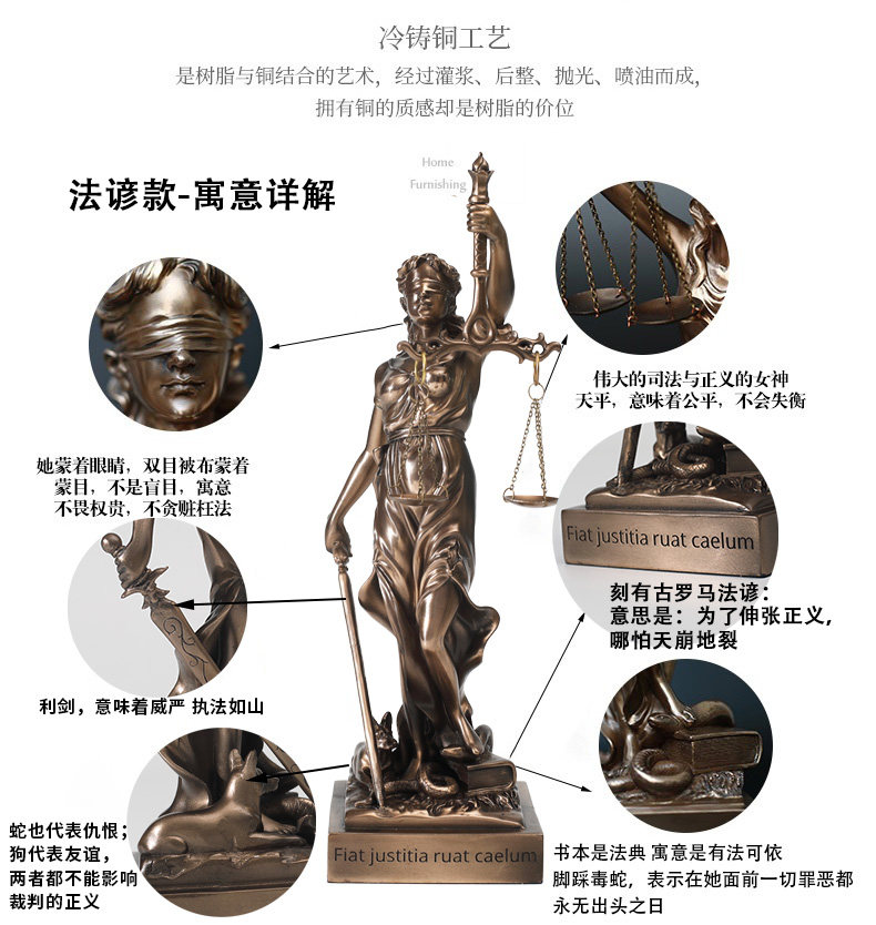 Imitation copper justice, justice, justice, goddess of justice, sculpture statue of Themis, lawyer's office, legal balance ornament