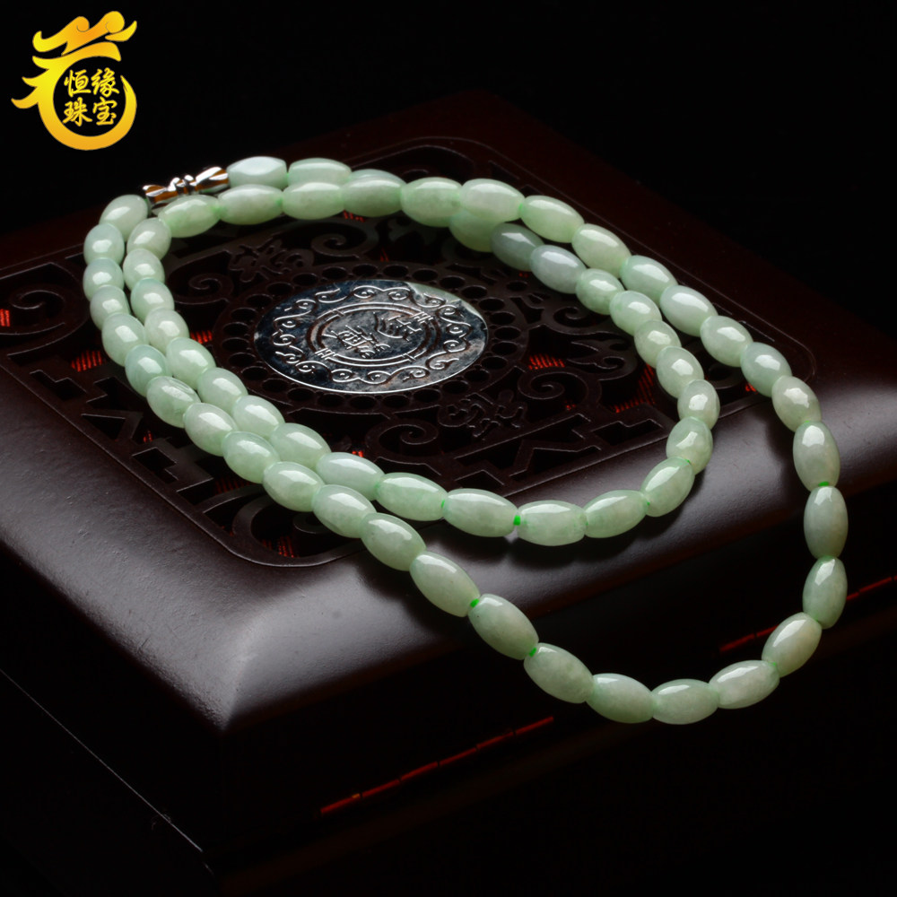 89 Burmese ice seed natural old pit jade jade bead necklace A goods jade female model Passepartout jade bead necklace lanyard