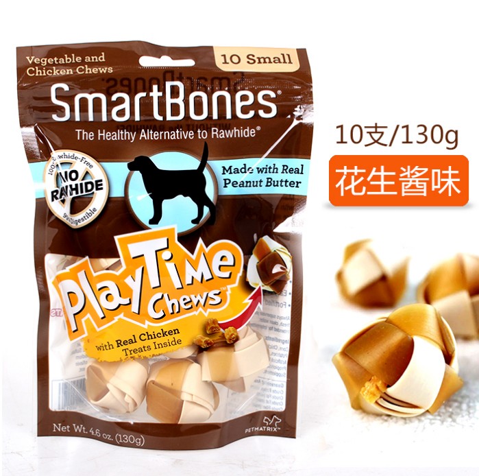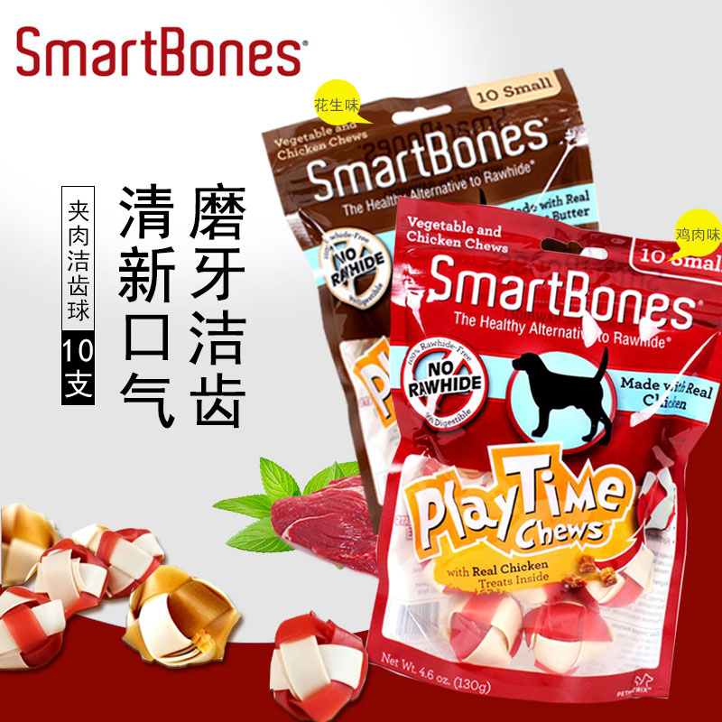 SmartBones Dog snacks Bite gum molar stick Sandwich meat ball Peanut chicken flavor mini 10 teeth cleaning bones