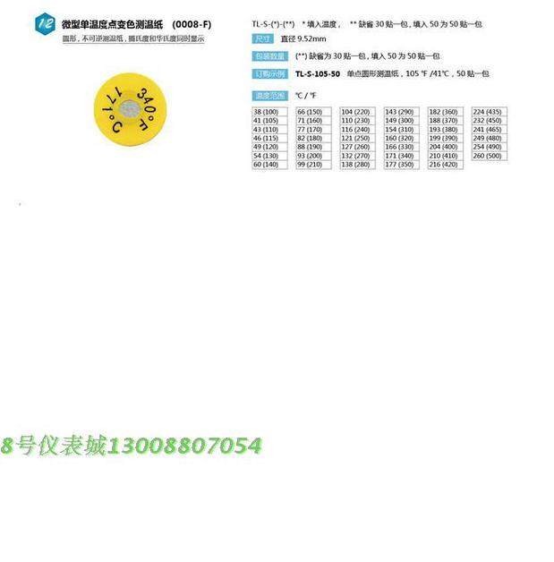 Micro single temperature point irreversible thermometry paper USA OMEGA TL-S-180 single lattice thermometric wax sheet