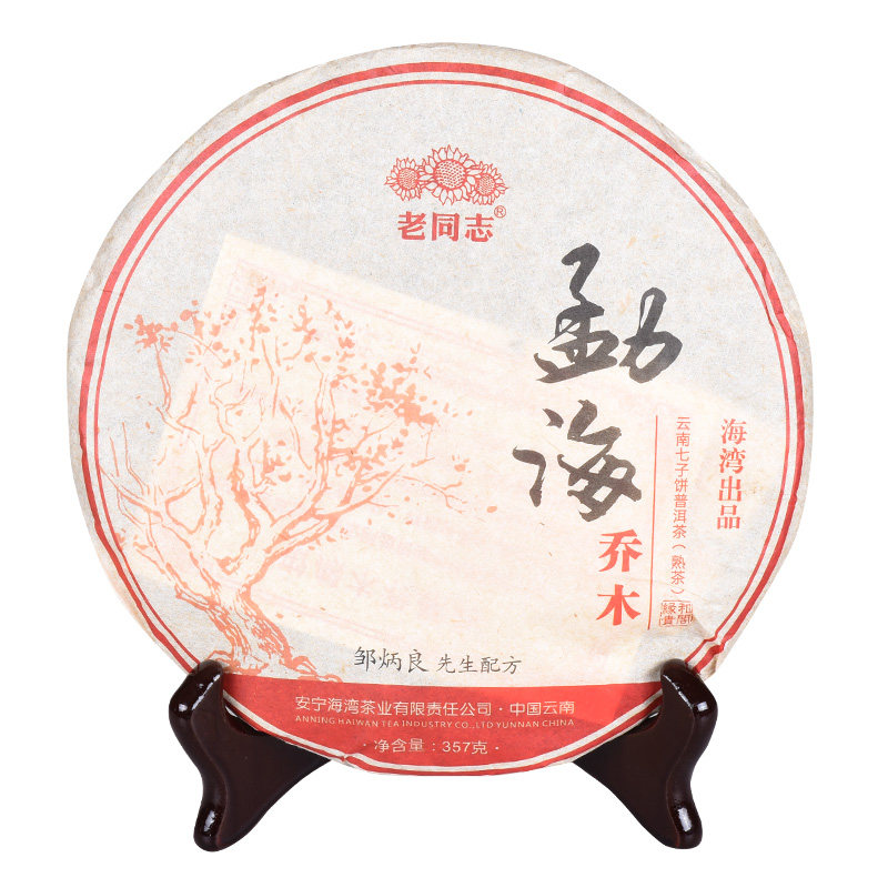 Old comrades Pu'er tea cooked tea Menghai Qiao Mu 131 batch cooked tea cake tea Cholu tea 357g cake