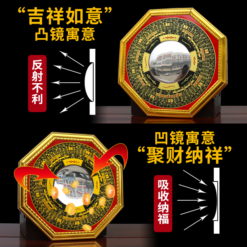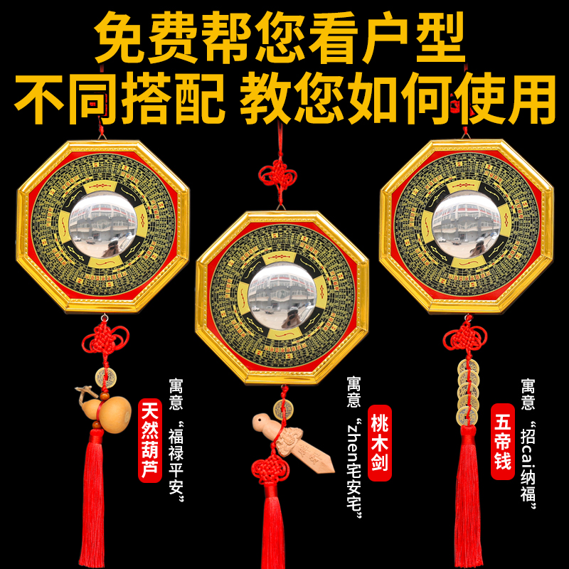 Nine palace Bagua mirror Household door town house concave mirror Convex mirror Bagua mirror Town house small yin and yang ornaments hang