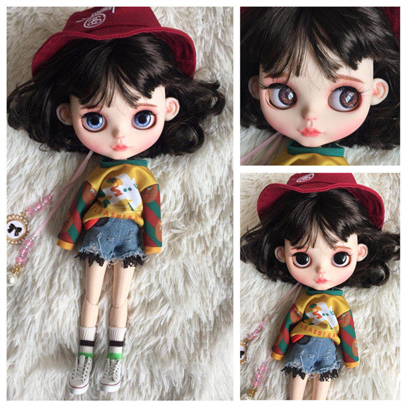 ICY DBS Blythe small cloth dolls dark brown black short hair 19 articular body white muscular reva finished tutorial