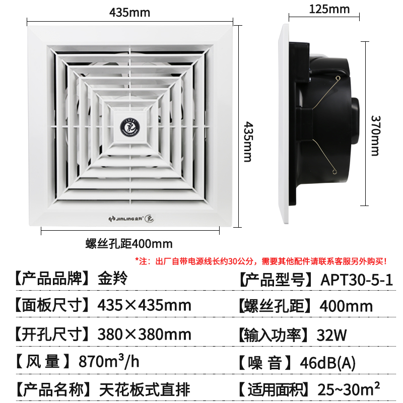 Golden Antelope Exhaust Fan 12 inch Kitchen Make-up Room Ventilator Suction ceiling Type of ceiling Direct exhaust fan APT30-5-1