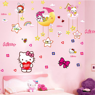 Remove cute cat wall stickers living room bedroom children's room background decoration cartoon cartoon sticker combination
