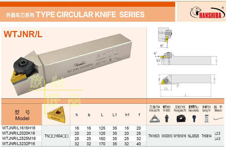 WTJNR1616H16WTJNR2020K16WTJNR2525M16WTJNR3232P16 with an anti-knife WTJNL16H16