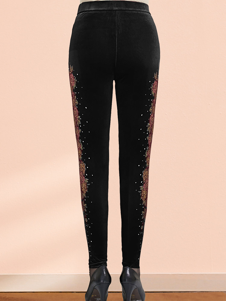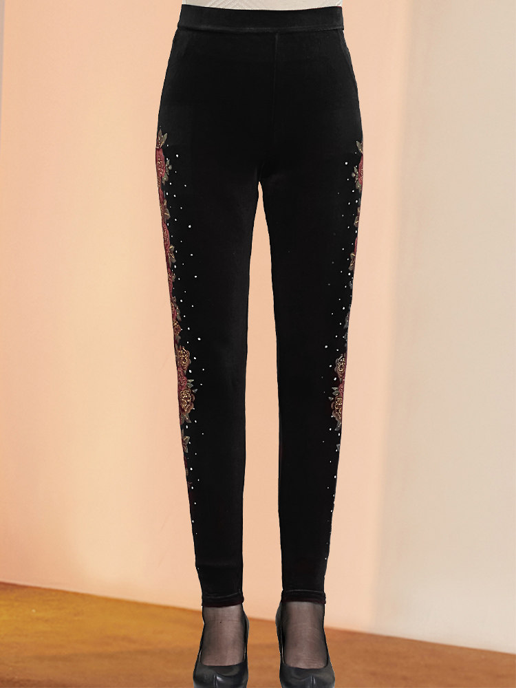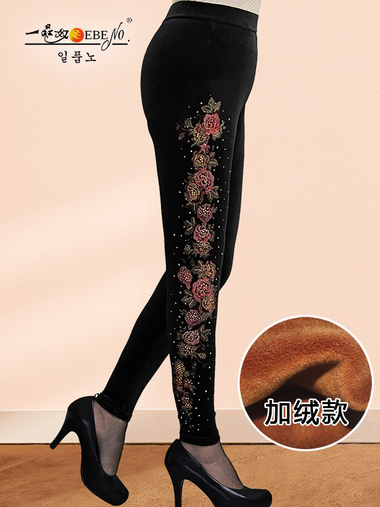 One Pint Mother Velvet 90% Pants Autumn Winter Mid Old Age Large Size Women's Dress Foreign Pie Inlaid Drilling Garnter Thickened Inner Hitch Pants