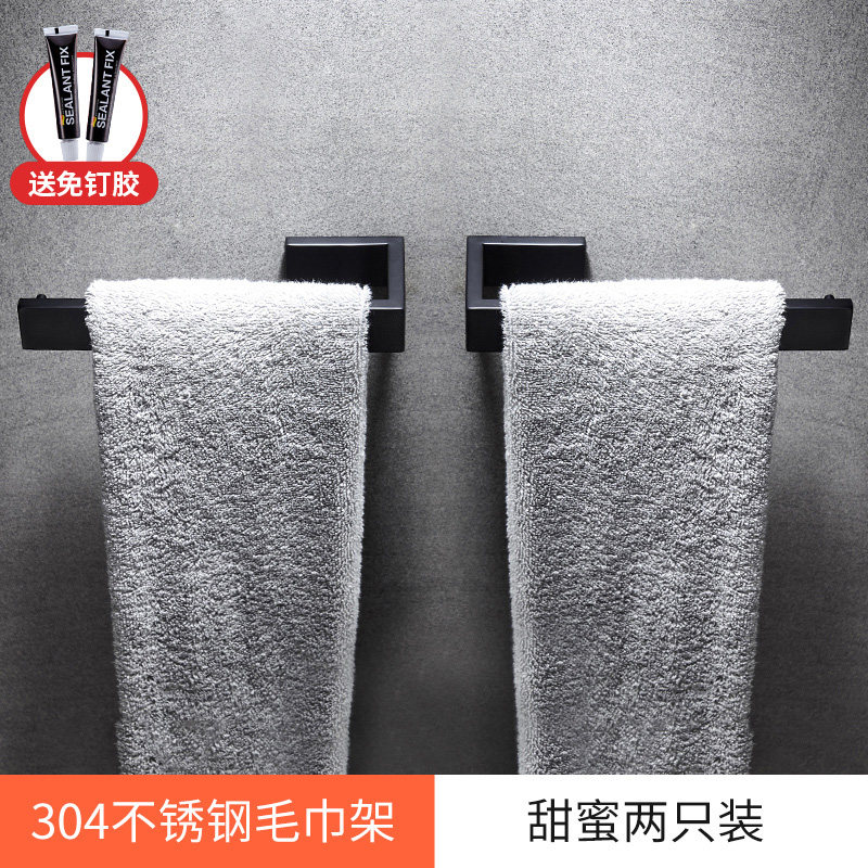 Punch-free Nordic 304 stainless steel bathroom towel ring Towel rack Powder room brushed black shelf