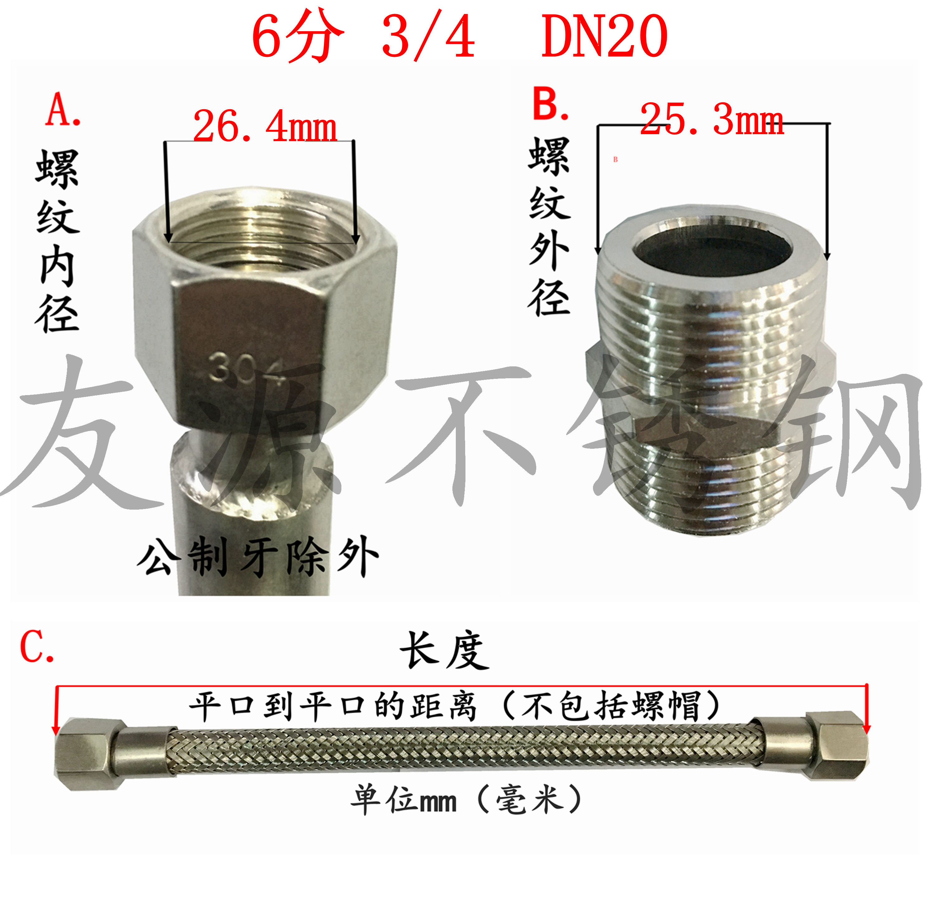 304 stainless steel bellows 6 points DN20 High temperature high-pressure industrial metal braided hose 3 4 steel wire steam pipe