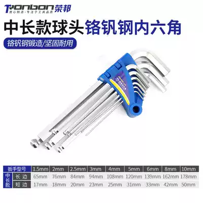 Extended ball head internal six-angle wrench top wire wrench screwdriver Internal 6-angle hexagonal industrial grade 9-piece set plum blossom rice