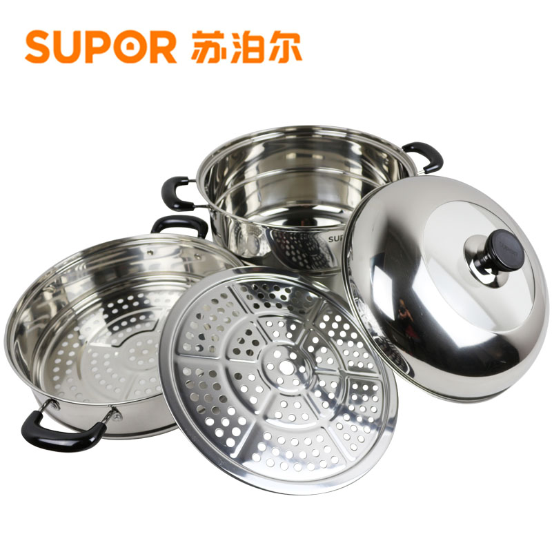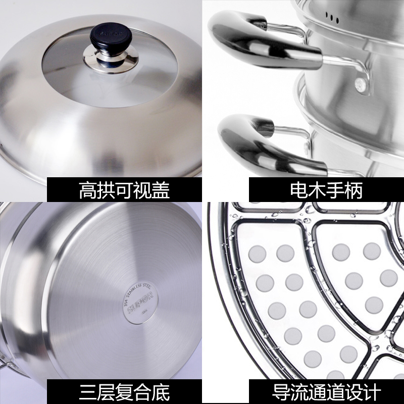Supoir steamer 304 stainless steel two-story soup pot 30CM rebase double steam cage induction stove special pot SZ30B5