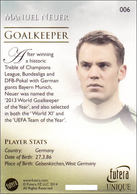Fortela Futera 2014 star card 006 Manuel Neuer Noil