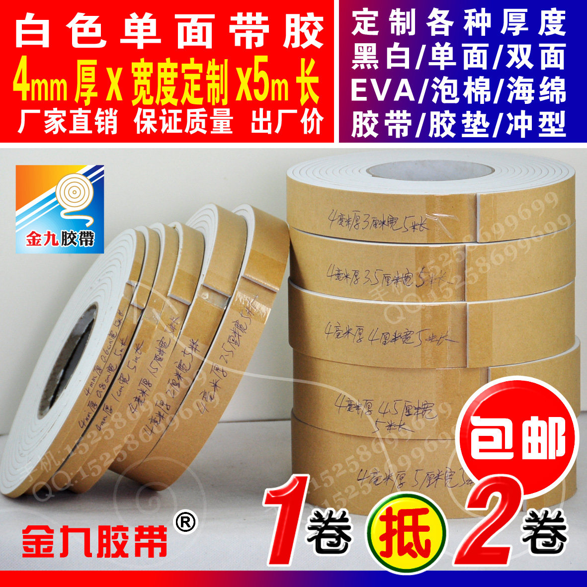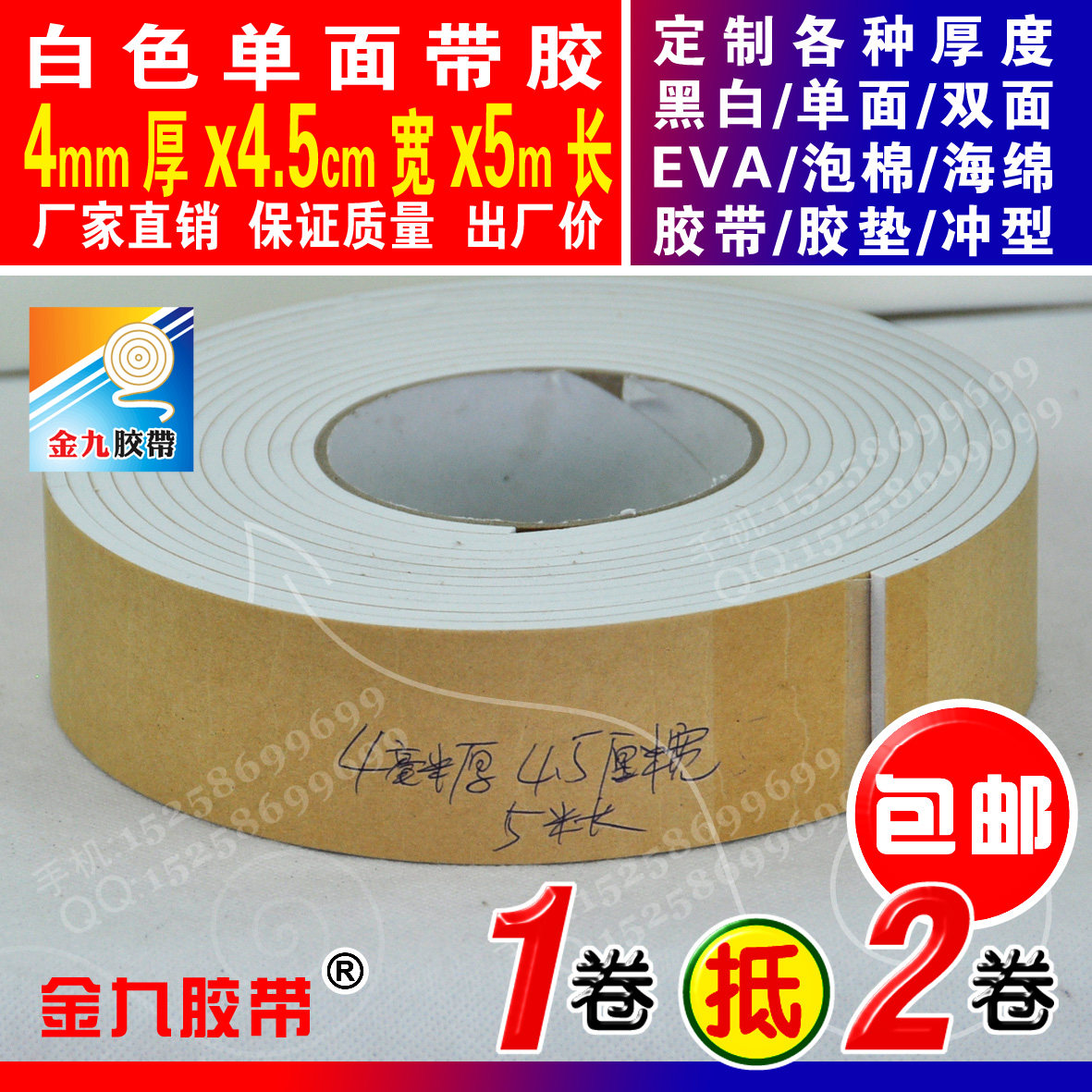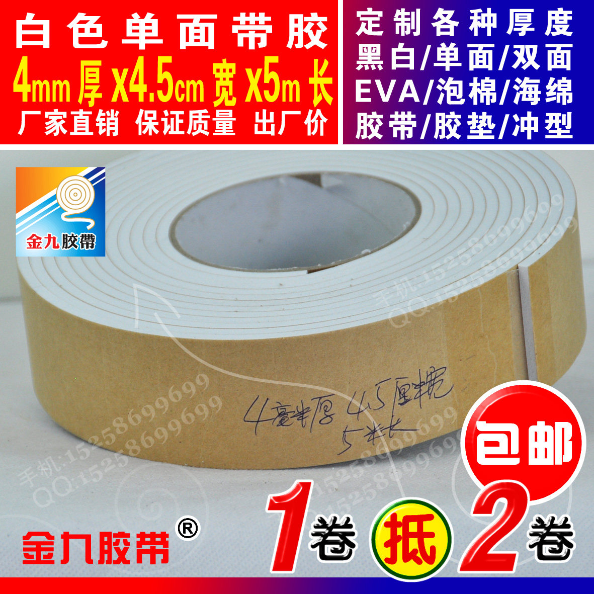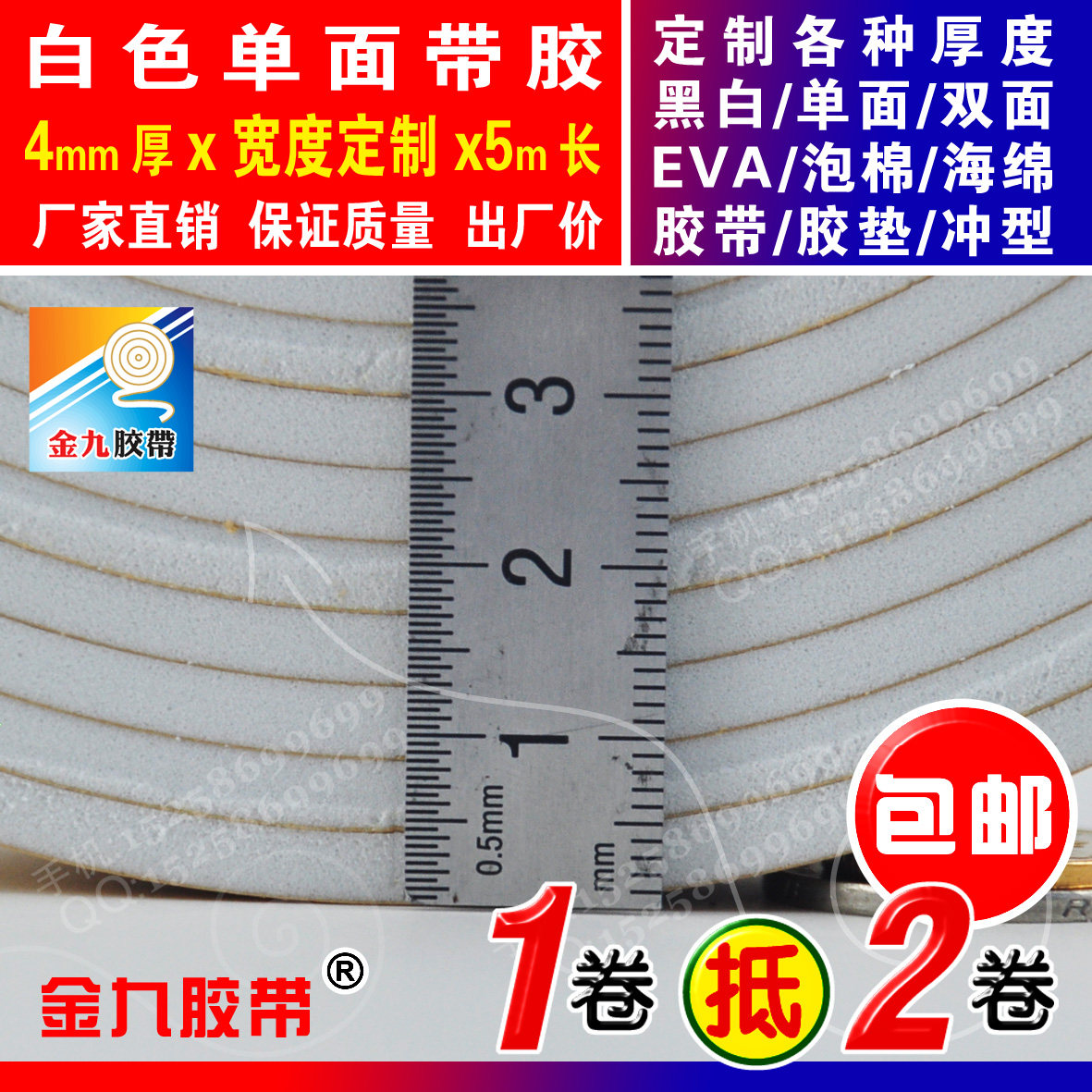 White single-sided glue 4mm thick 4 5cm width 5m Long EVA foam sponge adhesive tape foam shockproof adhesive tape Anti-bumper strip-Taobao