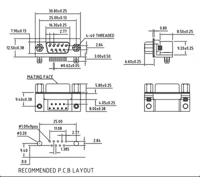 Gold-plated DR9 pin welding plate female seat Male seat RS232 485 DB9 serial port head curved needle 90 degree welding plate connection seat shell