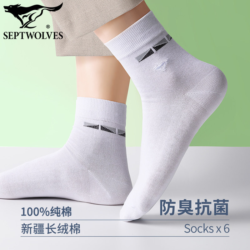 Seven wolf socks men pure cotton breathable summer air-proof thin air-breathable stockings in all cotton sweat stockings summer
