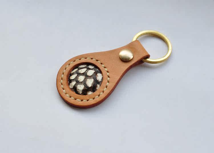 Keychain Handmade vegetable tanned leather leather head layer leather Artificial cultured cobra leather decorative car keys High-grade keys