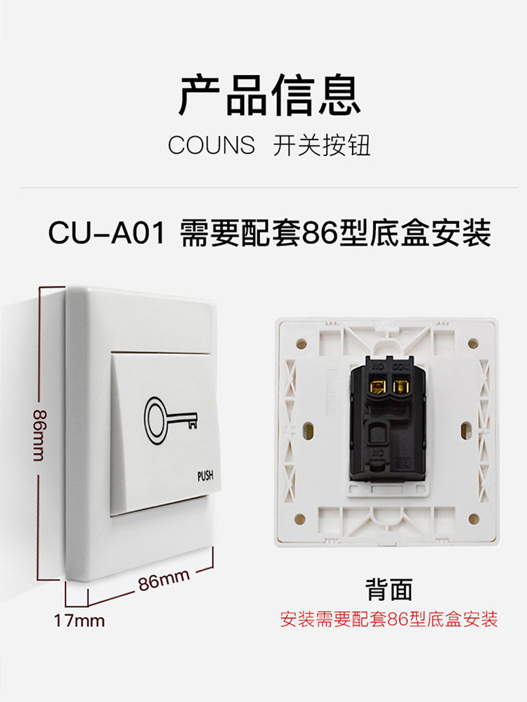 COUNS Gaoyou A01 access control exit button door switch 86 type access control normally open switch access control system