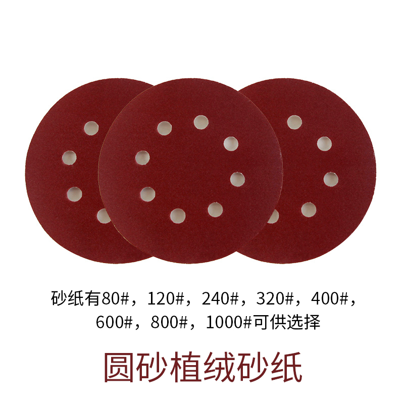 Round 5-inch 8 holes 125mm alumina flocking sandpaper 80 mesh -1000 mesh to choose