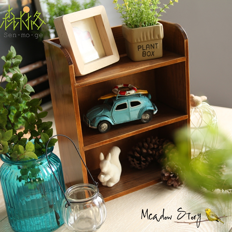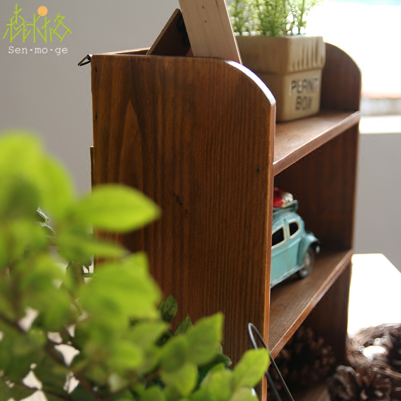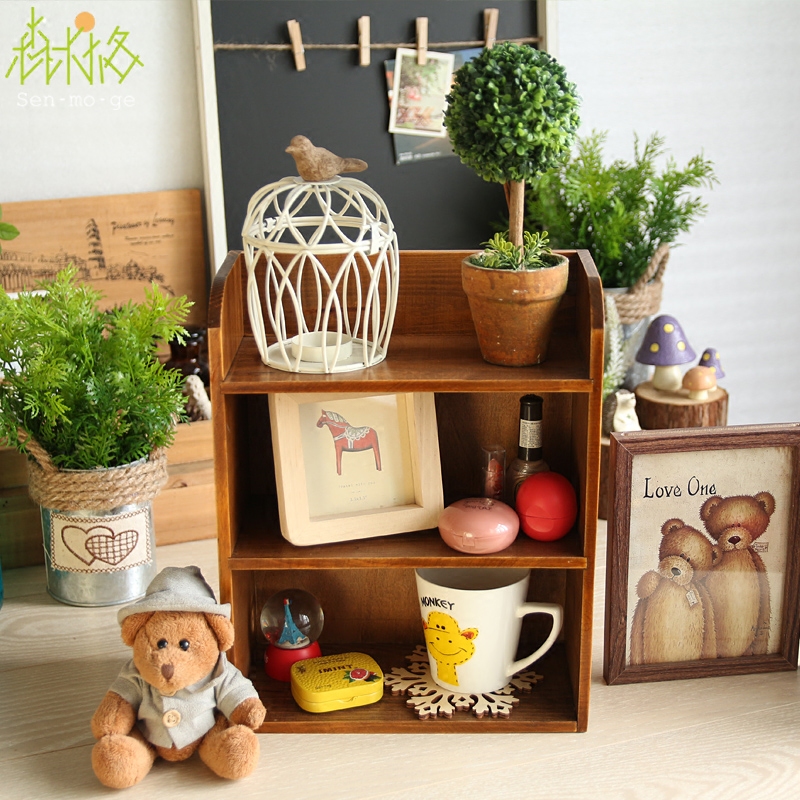 zakka desktop wooden cosmetics storage box Office storage box Vintage living room skin care products storage