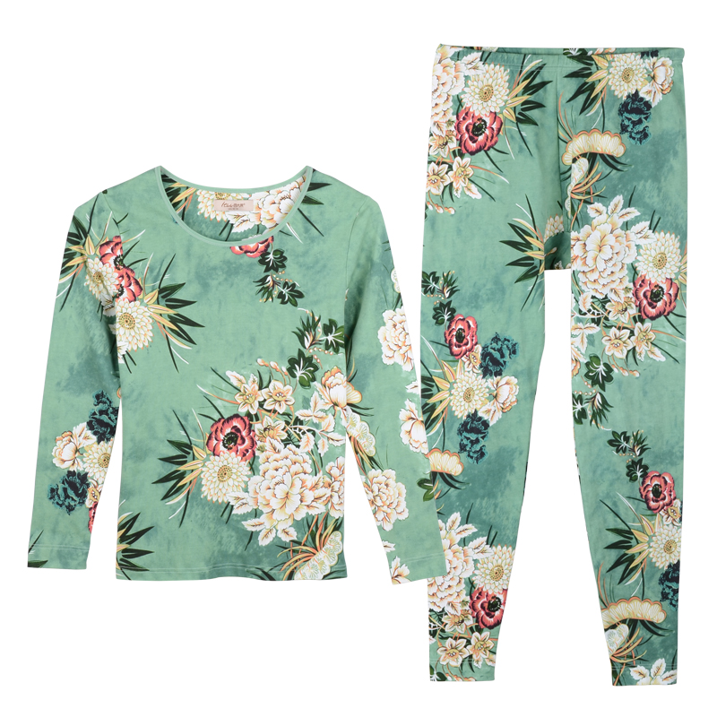 Italian women's middle-aged and elderly plus fat plus size pure cotton underwear set autumn clothes long johns cotton sweater warm red