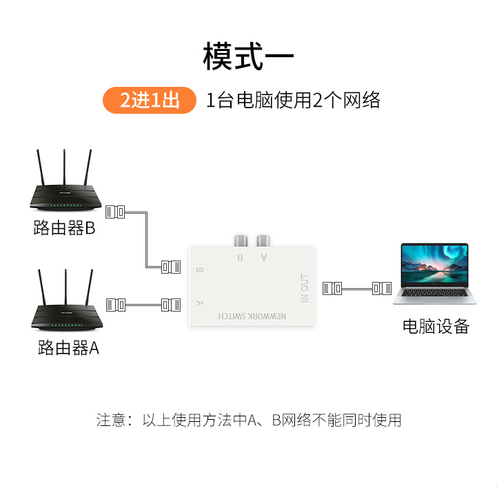 Internal and external network switch 2-port 2-in-1-out network switch 2-in-1-out manual network sharer plug-free