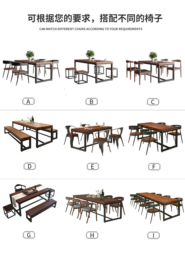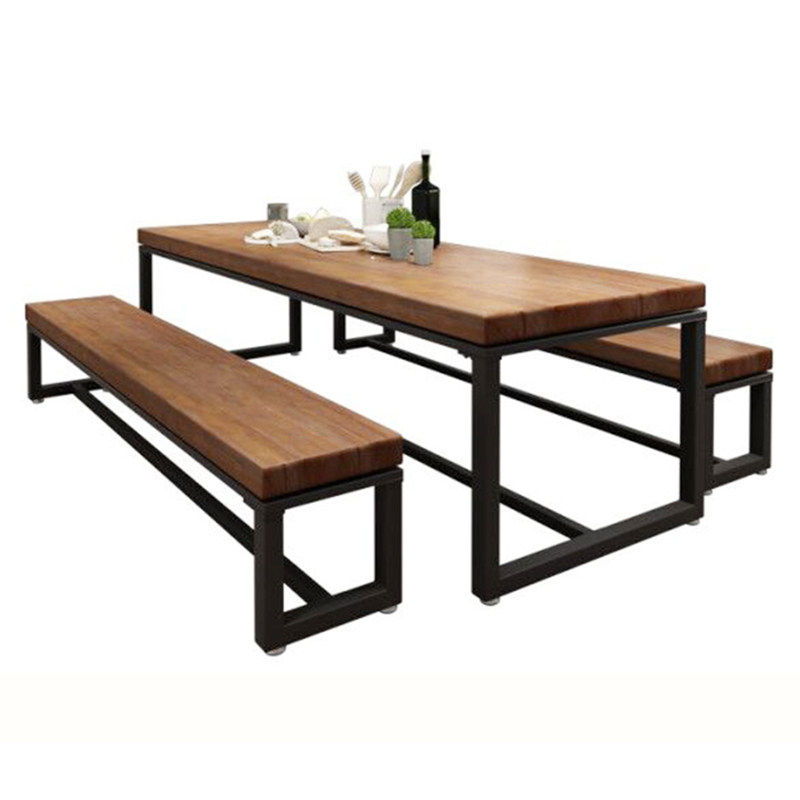Industrial style restaurant wrought iron solid wood dining table and chair combination cafe noodle restaurant rectangular long table bench 1034
