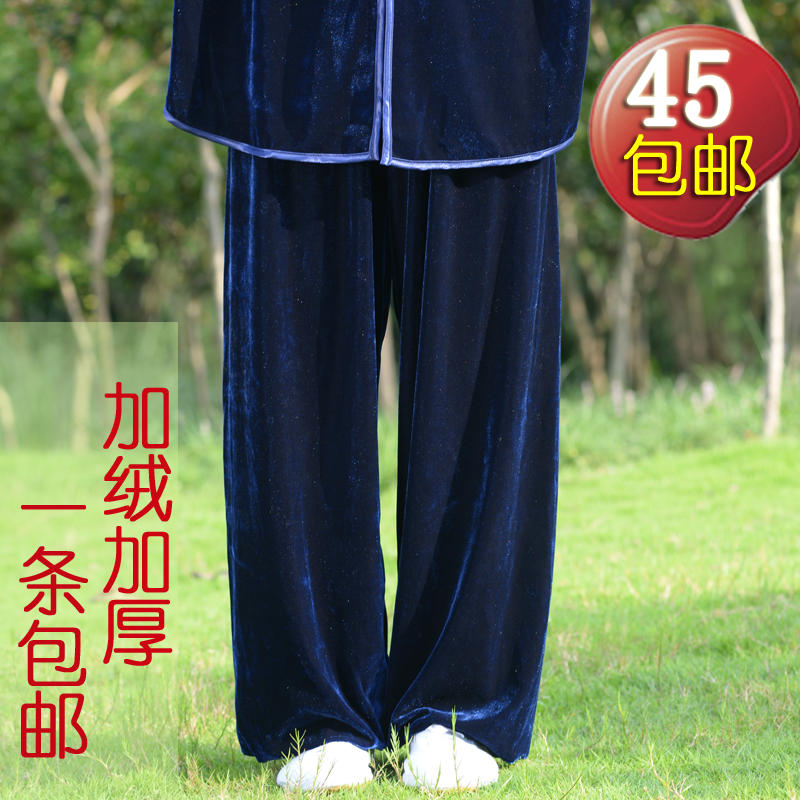 Tai Chi pants golden velvet autumn and winter thickened warm Tai Chi Chuan clothing female Tai Chi suit bloomers morning exercise pants male
