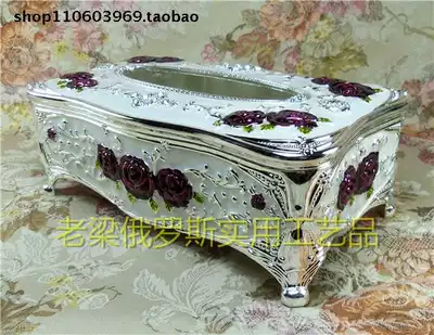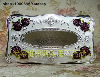 Z1 Russian metal removable toilet paper box tissue box toilet paper box Large silver edge white purple rose diamond ring