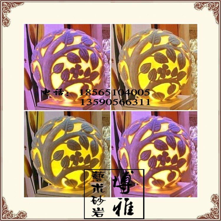 Boja Sandstone Sculpture Relief Round Carved Sandstone Lamps Hotel Villa interior and exterior decorated with leaf overdraft