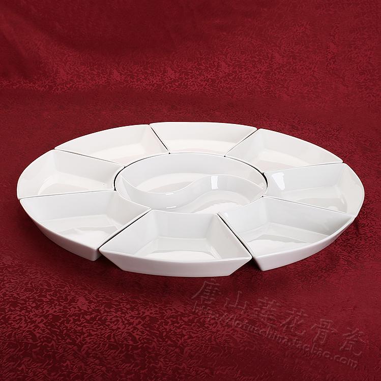 Nine-piece platter sub-large combination disc Tai Chi plate pure white bone china tableware quality porcelain pottery transparent