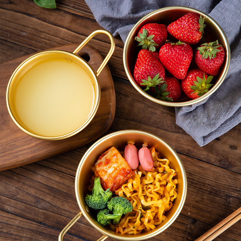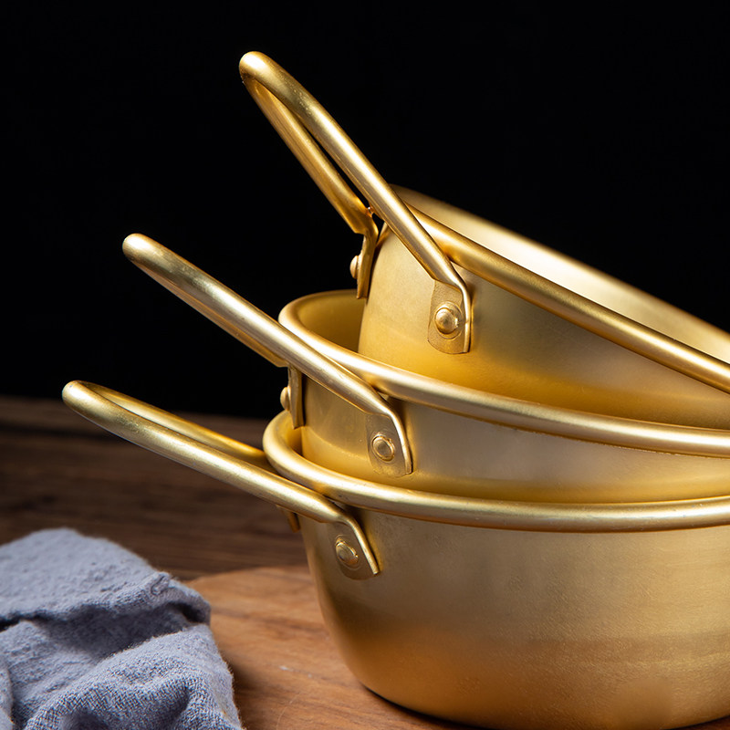 Rice wine bowl hot wine cool wine with handle yellow aluminum bowl Golden Korean cooking bowl large small restaurant special bowl