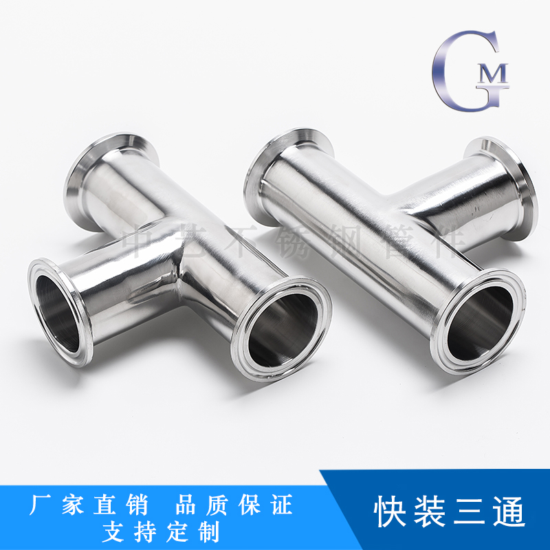 304 stainless steel sanitary grade quick-loading tee T-type hoop-type food grade internal and external mirror polished heterodiameter three-way pipe