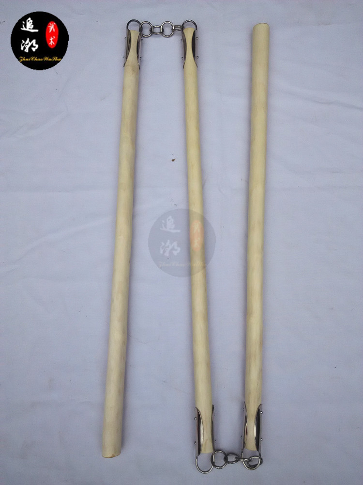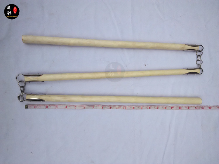 Traditional white wax rod three-piece martial stick fitness stick Shaolin stick performing stick three-piece double-stick boutique